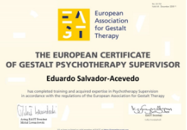 Formado en supervisión de terapeutas por el Instituto di Gestalt HCC Italia (Margeritta Spagnuolo Lobb).